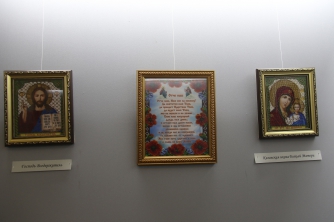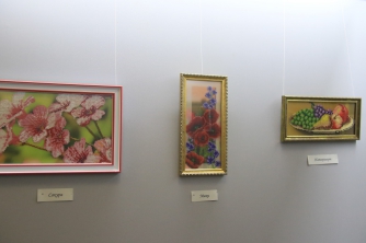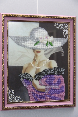 И вот, с того момента, как Л. Волошина вышила первую картину, прошло уже около трех лет. За это время мастерица вышила 50 картин, 40 из них представлены на выставке в музее. Среди них - иконы, пейзажи, животные. Особая роль отведена картинам из серии «дама в шляпе». Загадочные незнакомки в головных уборах кокетливо прячут глаза от любопытных посетителей выставки.