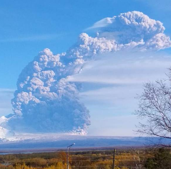 Добавим, что 27 сентября камчатский вулкан Шивелуч выбросил огромный столб пепла на высоту порядка 7 тысяч метров над уровнем моря.