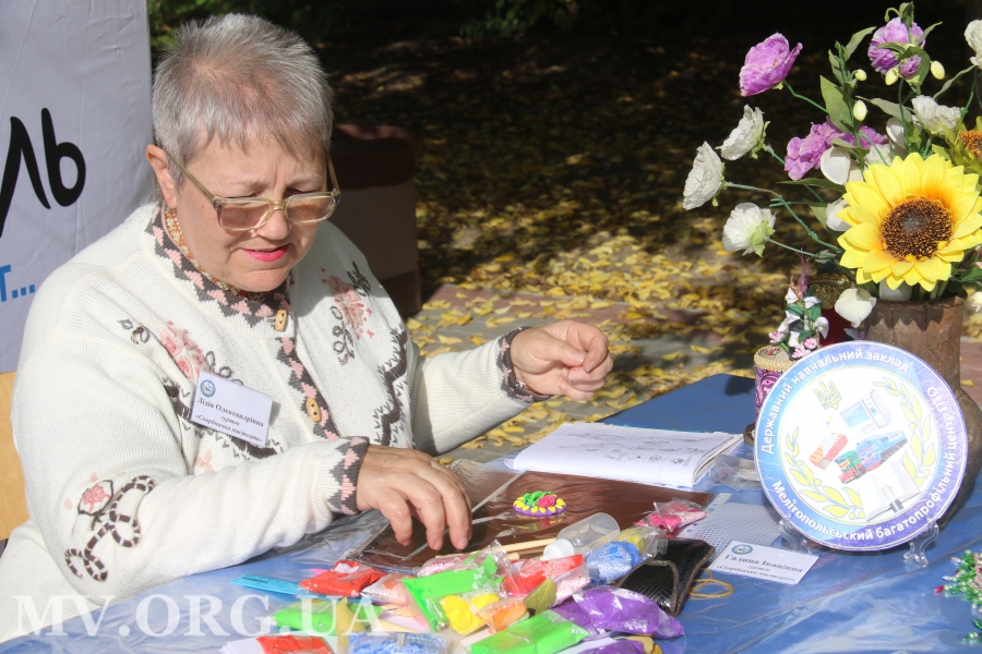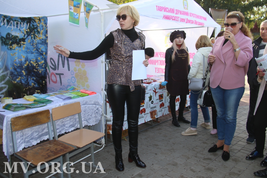 Вокруг фонтана в парке разместились мелитопольские товаропроизводители, учебные заведения и сельские советы.