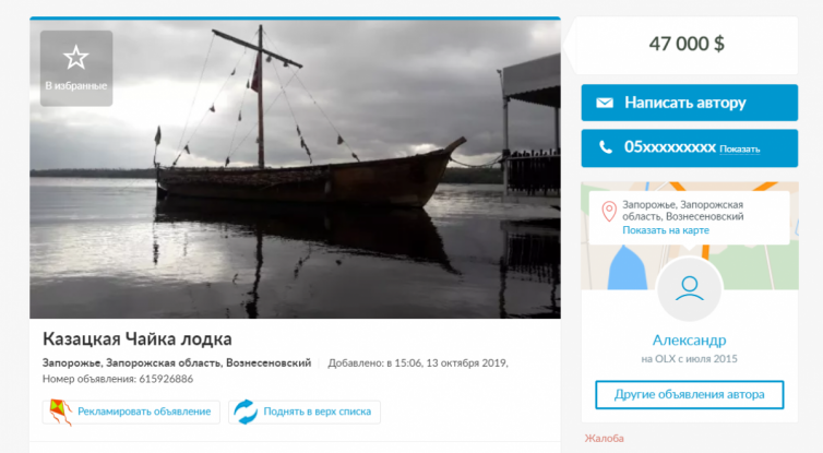 На сайте “ОЛХ” появилось объявление о продаже изготовленной в 2016 году казацкой “Чайки”.