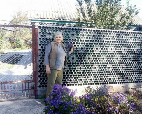Жительница Озер Кобеляцкого района на Полтавщине, Вера Ивашко создала из стеклянных бутылок забор и утеплила стены дома.