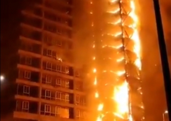 More footage of the #ENEL building, a symbol for Santiago, engulfed in flames. According to news sources, protesters are setting fire at toll gates at highways around the city as well. The whole #EvasionMasiva is turning in complete outrage. pic.twitter.com/RFOmVjSTIw