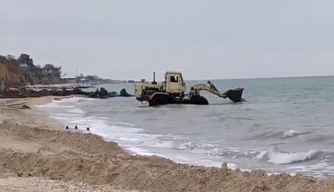 Наступившая осень не мешает строительству волнорезов в Кирилловке.