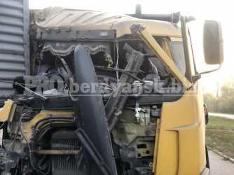 Авария случилась сегодня, 23 октября, рано утром на Мелитопольском шоссе, в районе улицы Фестивальной. По информации очевидцев, водитель зерновоза протаранил автомобиль с прицепом, который стоял на обочине дороги. От сильного удара один из грузовиков лишился кабины, второй – колес.