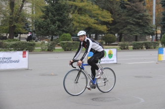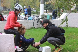 По парку спортсмены бегут без сопровождения. А вот по дороге колону велосипедистов возглавляет мотоциклист. После первого же заезда он жалуется, что ехал со скоростью за 40 км/час, а спортсмены на великах то и дело норовили обогнать его. А ведь это только новички были! Бывалые едут и того быстрее.