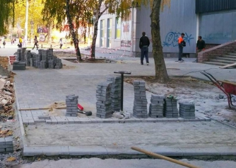 Одновременно в нескольких местах Мелитополя идет укладка плитки.