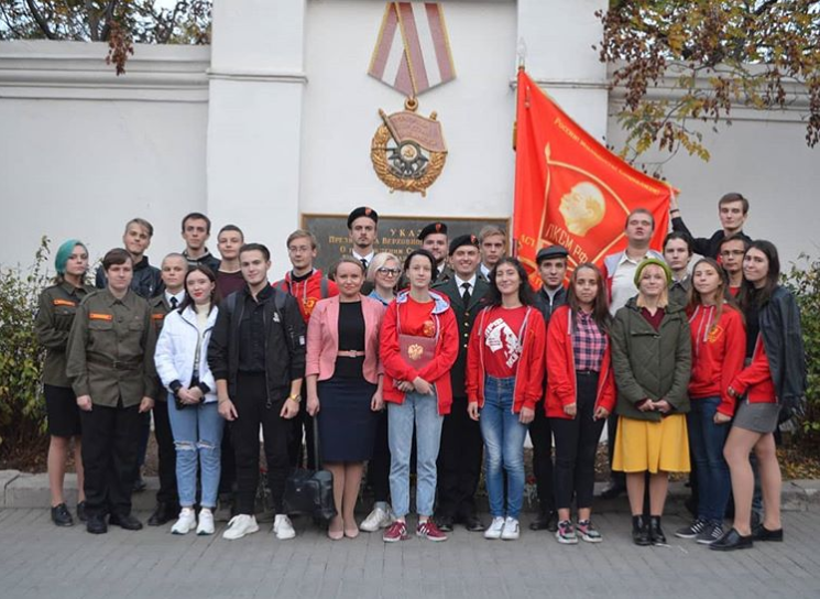 Во время мероприятия у стены с памятным знаком стояли дети в костюмах пионеров и с флагами. Кроме этого, нескольких детей также приняли в комсомол, и, по советской традиции, вручили им билеты.