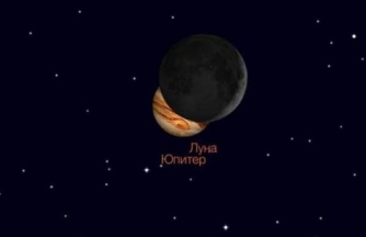 Сегодня, 31 октября, вечером происходит сближение молодой луны (фаза 0,15) с планетой Юпитер (блеск 1,9 звездных величины).