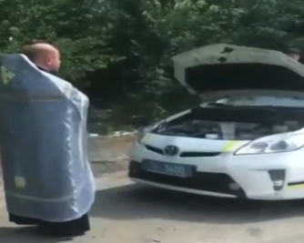 Когда освящают автомобили простых обывателей, то подразумевается желание им "ни гвоздя, ни жезла". А от чего защищают полицейских?