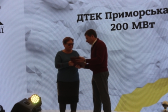 Глава Запорожской облгосадминистрации Виталий Туринок за обеспечение реализации ветроэнергетических проектов в Запорожской области наградил грамотами Запорожской ОГА людей, которые сделали значительный вклад в создание Приморской ВЭС.