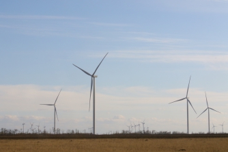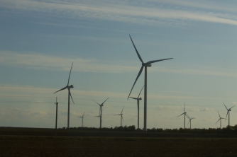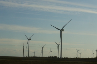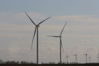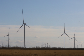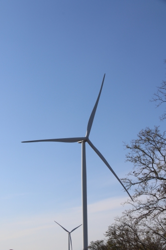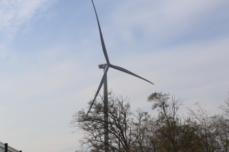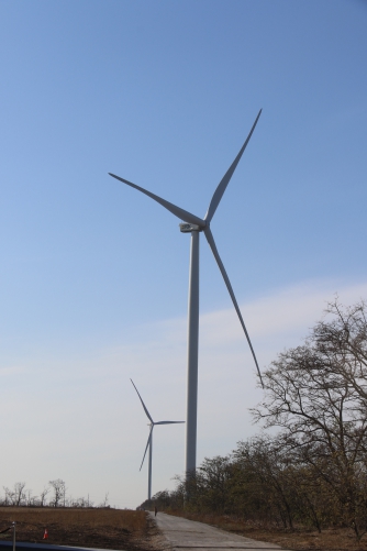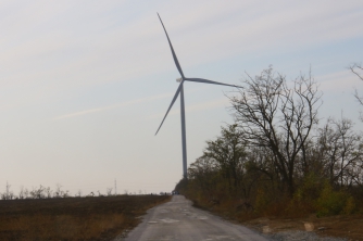 Затем журналисты попросили провести нас к самим ветрякам, ведь так хотелось их увидеть вблизи и постоять у их подножия. И вот мы стоим у самого ветрогенератора. Ощущения н передаваемые – огромный ветряк с длиннющими лопастями… Складывалось такое впечатление, что вот-вот огромная ветротурбина затронет тебя своей лопастью. А еще, когда стоишь возле нее, то слышишь сам звук движения лопастей, от которого идут мурашки по коже. Кроме этого, в зависимости от направления ветра, ротор, к которому собственно и крепятся лопасти, поворачивается за ветром и издает соответствующий звук, который слышен уху стоящих рядом людей. Эмоции переполняют.