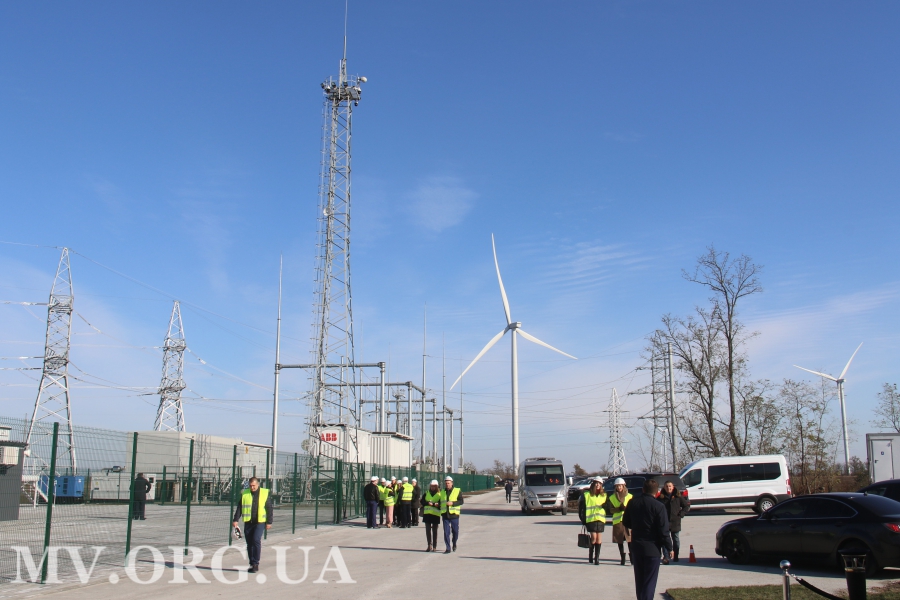 - Суммарная мощность станции - 200 мегаватт, количество ветроустановок – 52, по 26 в каждой очереди (Приморская ВЭС-1 и Приморская ВЭС-2. – В.Ч). Предыдущий объект – тоже 200 МВт – это Ботиевская ВЭС, там 65 ветроустановок. Мощность та же самая, а разница оттого, что здесь более современные, более мощные турбины 4-мегаваттного класса. За счет того, что 25 проц. прирост мощности, мы сэкономили на местах установки, единиц мощности стало меньше. Вся электроэнергия, которая генерируется ветроустановками, по кабельным линиям передает электроэнергию на эту подстанцию. Здесь 90 проц. оборудования иностранного производства, в основном немецкое – трансформаторы, комплектное распредустройство General Electric. Все это собирается, преобразовывается, поднимается напряжение, чтобы минимизировать потери, и передается в сети «Запорожьеоблэнерго» и дальше в объединенную энергосистему, а затем на потребителя, - рассказал начальник.