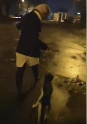 Женщина ночами водит на поводке измученное животное (ВИДЕО)