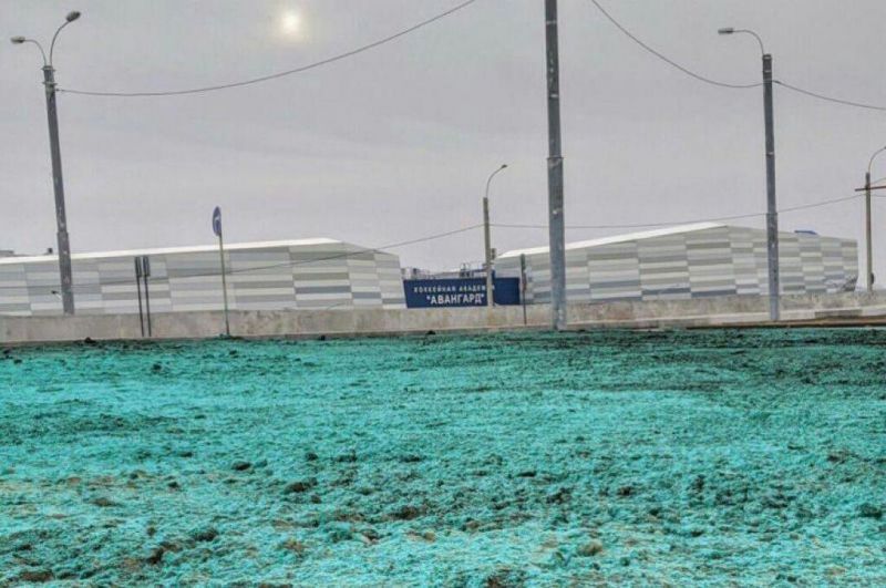 В российском Омске перед приездом президента Владимира Путина и главы Казахстана Касым-Жомарта Токаева на XVI Межрегиональный форум сотрудничества этих двух стран покрасили землю в зеленый цвет.
