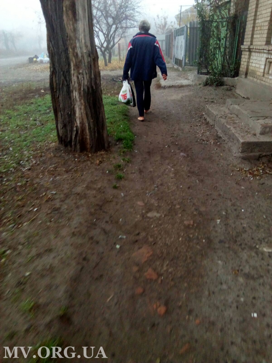 Остается только догадываться, какую цель преследует мелитополец - закаляется, либо таким образом бережет обувь.