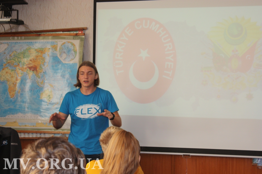 Выпускник лицея № 5 Кирилл Передерий учил школьников говорить и писать на турецком языке. На встречу к лицеистам он приехал по приглашению учителей иностранных языков лицея Натальи Синельник, Елены Галицкой и Натальи Заезжай.