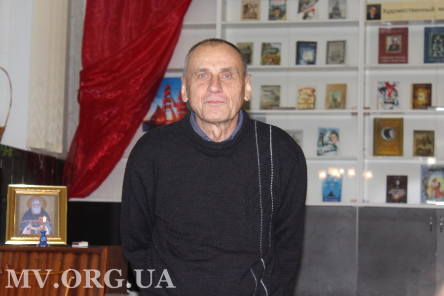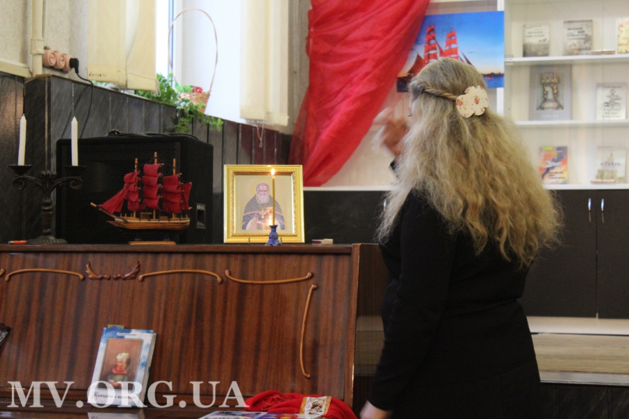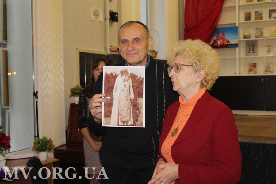 Далее сотрудники библиотеки напомнили присутствующим о том, что большая часть книг Сергея Ивановича посвящена мелитопольским священнослужителям, претерпевшим гонения. Об одном из них писатель рассказывает и в новой книге. Сценарий «С крестом на море и на суше» посвящен человеку удивительной судьбы - мелитопольскому исповеднику Феодосию Станкевичу.