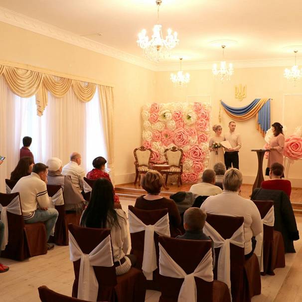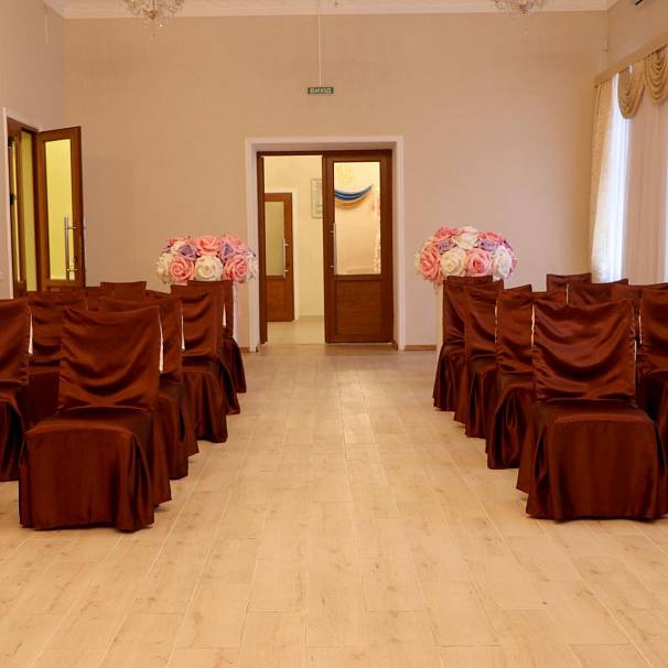 Оригинальные фотозоны, эстетичная мебель в торжественном зале, ремонт в комнатах жениха и невесты, новый туалет. Очень приятный образ заведения, в котором регистрируют свои отношения влюбленные.