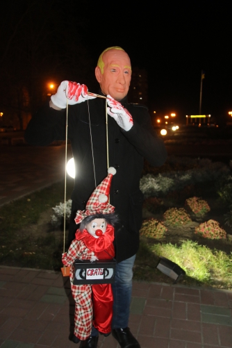 - Я хотел показать украинскому народу, что его дурят. Вот эта кукла - это ваш президент. Он как играл, так и продолжает играть, но им как руководили, так и продолжают руководить. Нам кажется, что все хорошо, что вот отведут войска и наступит быстрый мир. Все хотят мира. И вы, и я, и воины в окопах, которые защищают Украину, но мы хотим мира в свободной Украине, а не в кандалах. Поэтому я уверен, что нам надо бороться, - пояснил "Путин".
