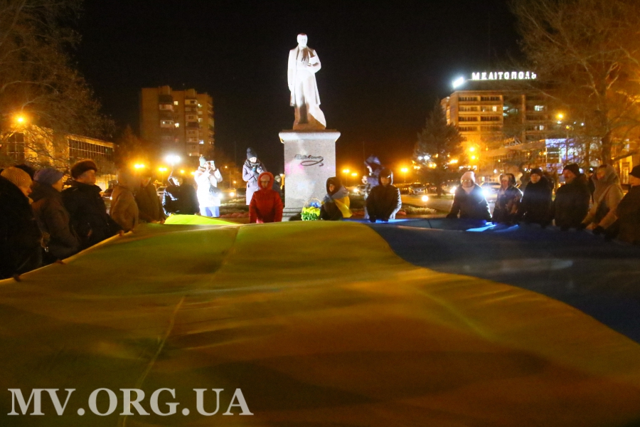 Большой флаг и маленький Путин - мелитопольцы отметили День достоинства (ФОТО)