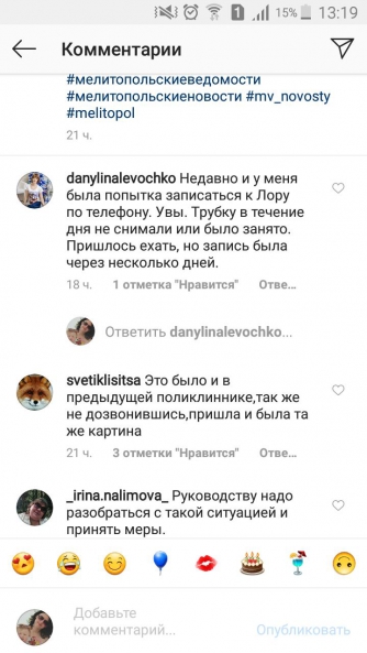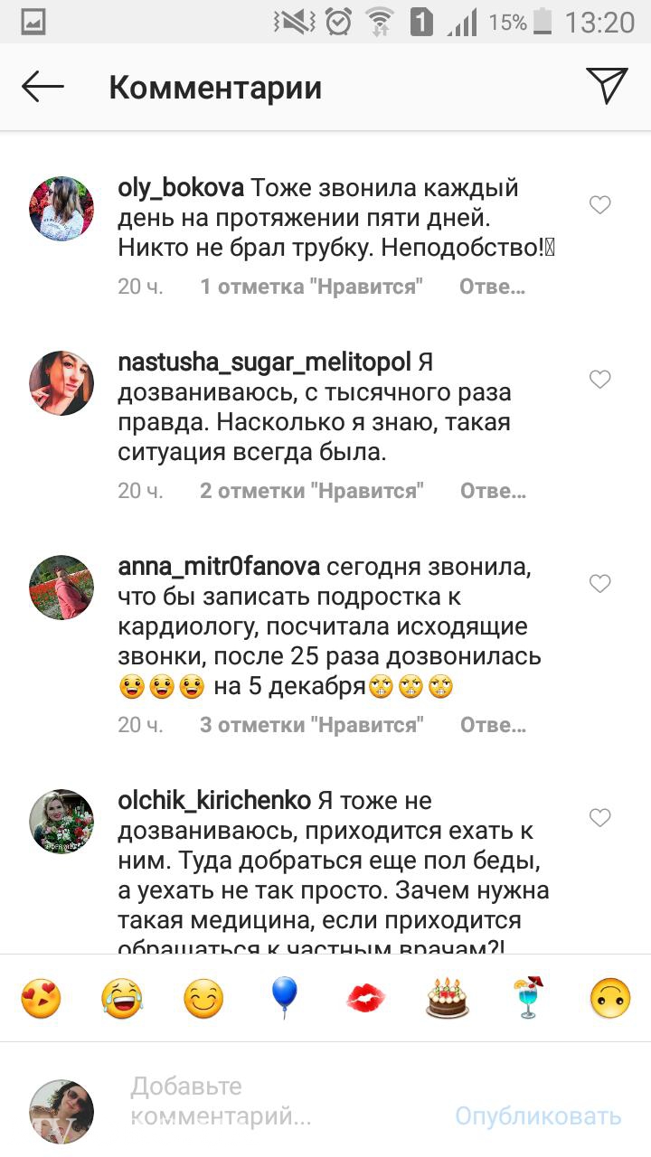 История MV о том, что в регистратуре «зеленой» поликлиники не отвечают на звонки пациентов, чтобы записаться на прием к узкому специалисту, вызвала шквал комментариев в социальных сетях. Мелитопольцы наперебой жалуются, что так же, как и героиня публикации – Мрина, – не могут дозвониться в регистратуру.