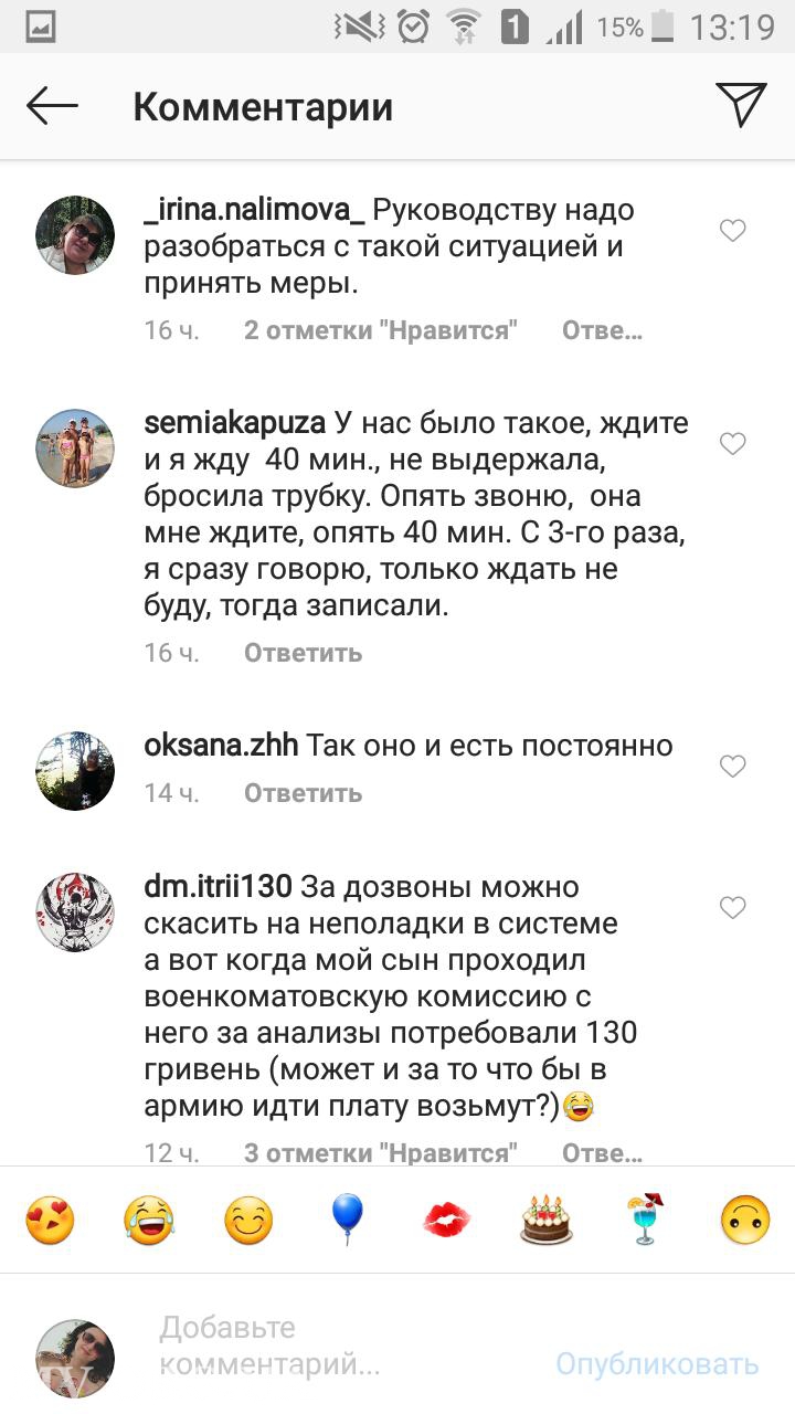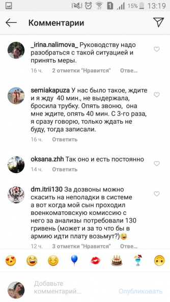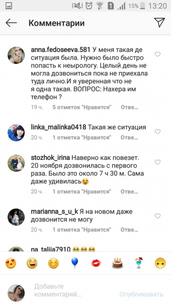 - Недавно и у меня была попытка записаться к ЛОРу по телефон, - пишет danylinalevochko. - Увы. Трубку в течение дня не снимали или было занято. Пришлось ехать, но запись была через несколько дней.