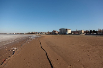 После таких ЧП в Кирилловке, на противоположном берегу моря - в Приморско-Ахтарске - произошла другая природная аномалия. Берег превратился в пустыню, а вода ушла от берега больше чем на 100 метров.