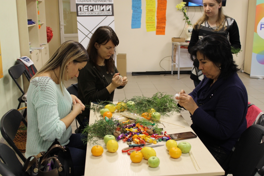 В качестве благодарности для всех партнеров проекта, которые так или иначе помогали в его реализации и развитии, был проведен мастер-класс по фуд-флористике. Основам изготовления вкусного букета из фруктов и конфет гостей мероприятия обучала молодой флорист Ирина Гавриш.