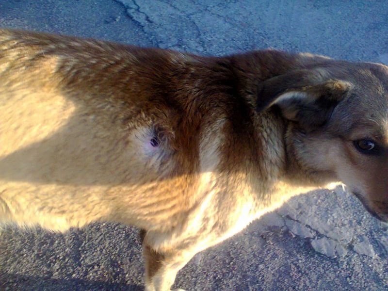 На минувшей неделе запорожские зоозащитники обнаружили в Хортицком районе города бездомную собаку на спине у которой виднелась открытая рана от пули.