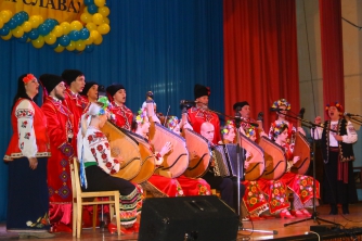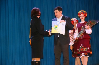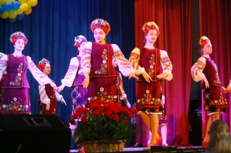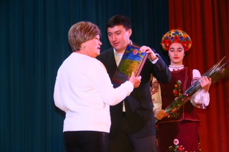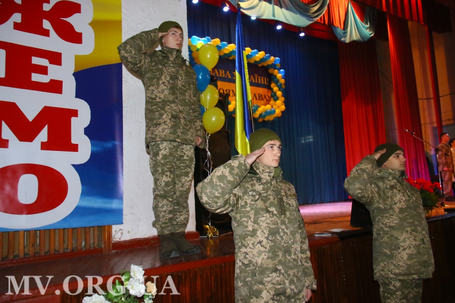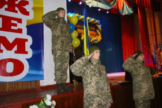 Мероприятие началось с хореографической постановки, а затем в зрительский зал торжественно внесли государственный флаг Украины.
