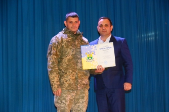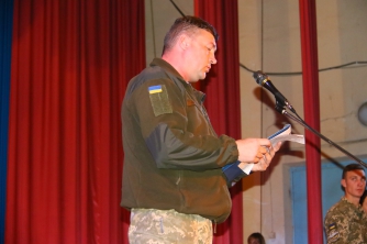 Поприветствовал своих побратимов от имени 25 бригады воздушных сил Вооруженных сил Украины майор Ларионов. Он поздравил военнослужащих от своего имени, а также передал слова поздравления от командира воздушных сил Украины генерал-полковника Дроздова и наградил грамотой еще двух бойцов воздушных сил.