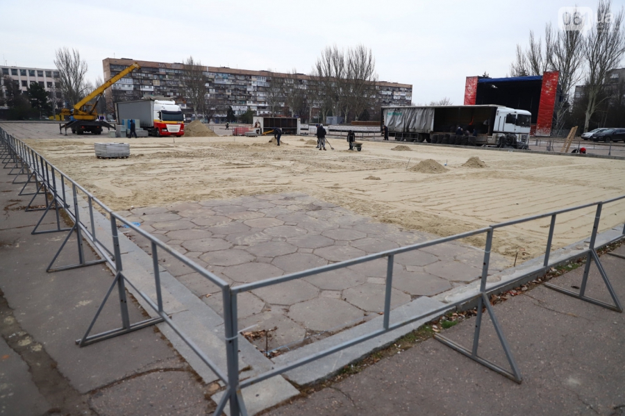 В настоящее время рабочие закончили укладывать песчаный слой и в скором времени здесь начнут прокладывать основу ледовой арены.