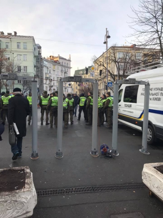 Возле Офиса президента на Банковой разбили палатки и установили металлодетекторы
