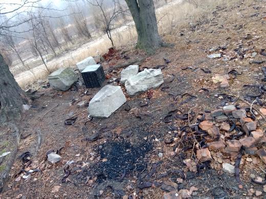 В общем, печально. Вандалы свалили надгробные плиты, бабули выпасают коз, ребята жарят шашлычок на плитах, а "особо пылкие" придаются чувствам на кладбище.