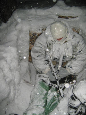 Учения на которых был российский спецназ имитировали конфликт с войсками международного альянса, солдаты тренировались спать в окопах в тяжелых зимних условиях.