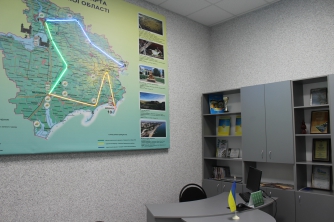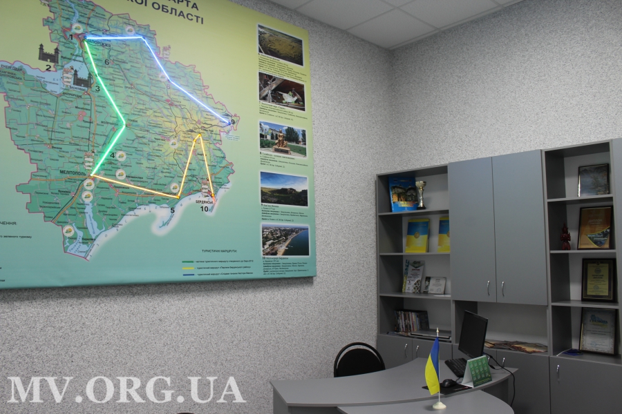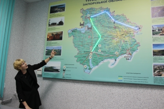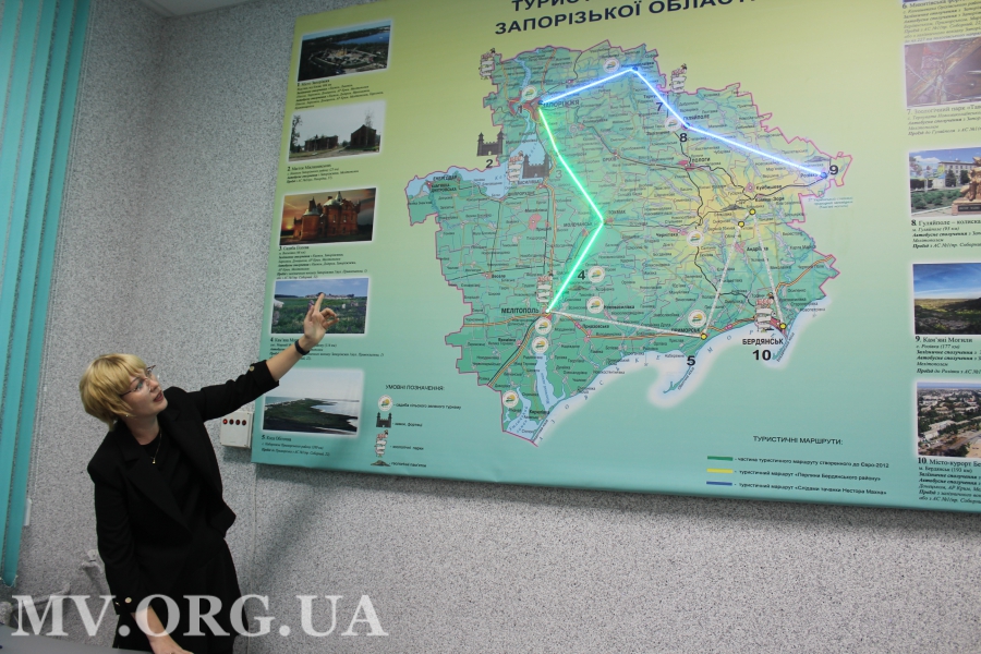 Тут же, в лаборатории, карта Запорожской области, на которой проложены туристические маршруты. Один из них – авторский от педагогов МГПУ: маршрут вдоль реки Берды, каменных могил и Елисейского карьера.