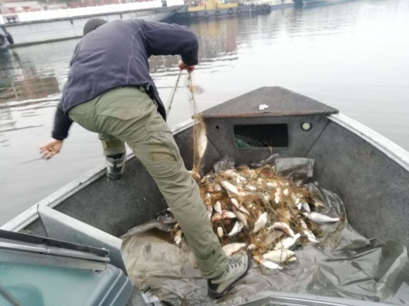 В заливе Кривая Бухта изъяли 3 сетки общей длиной 300 метров. В сеть успело попасть 67 килограмм плотвы и карася.