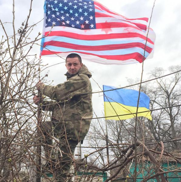 На Facebook странице Кияна есть фото, где он стоит с американским флагом в зоне АТО.