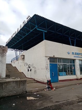 Стены ж\д вокзала обрисованы граффити и испещрены различными надписями, дорога перед входом в здание покрыта ямами и выбоинами, а мусорные урны забиты отходами и тряпками. Такая удручающая картина открывается приезжающим в Энергодар на электричке.