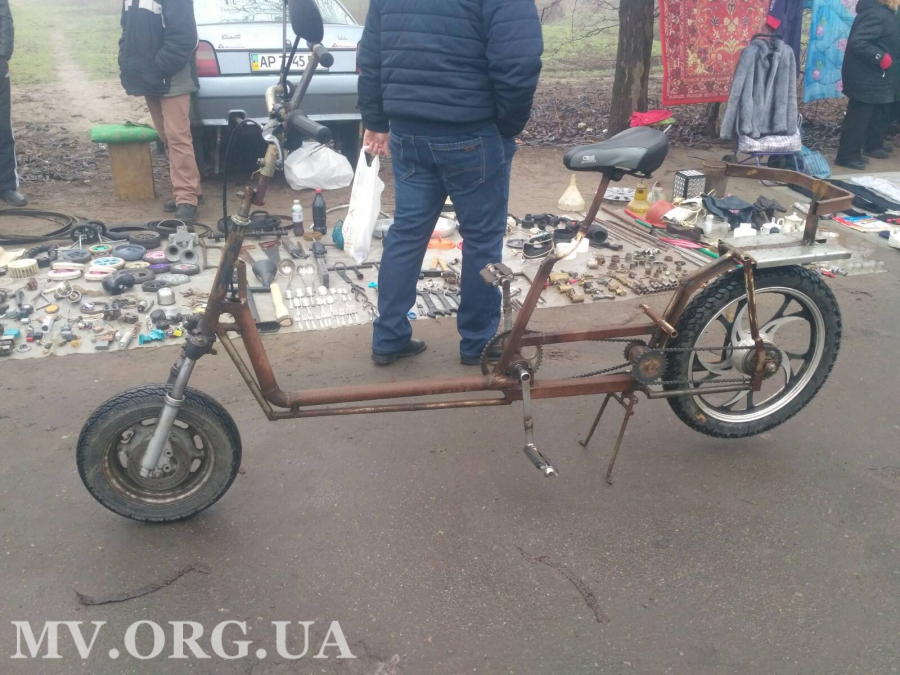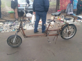 На фото своеобразного велосипеда-химеры, попавшего в кадр мелитопольчанке, приславшей нам фото, в районе барахолки в проезде Корвацкого, представлен любопытный образец мятежной экспериментаторской мысли, для которой нет места сложившимся устоям и запретам.