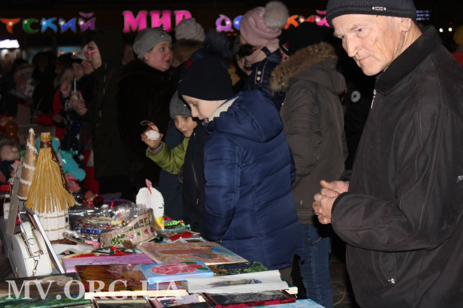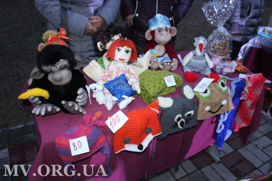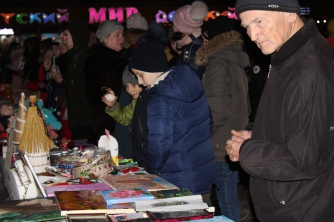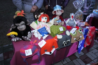 С 16.00 близ площади Победы тут и там расположились локации, на которых продавали различный товар – поделки ручной работы, вязаные куклы, шапки, шарфики и сумки, а также картины и разные вкусности. Вырученные за эту продукцию деньги будут переданы на лечение Ю. Дюжиковой.
