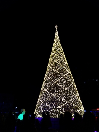 Ее закончили собирать только днем, а уже сейчас она сияет огнями. Традиционно елку зажигали по окончании праздничной сказки. В этом году иллюминацию включили в самом начале праздника. Вместе с елкой загорелись вся иллюминация, которой украшена центральная площадь.