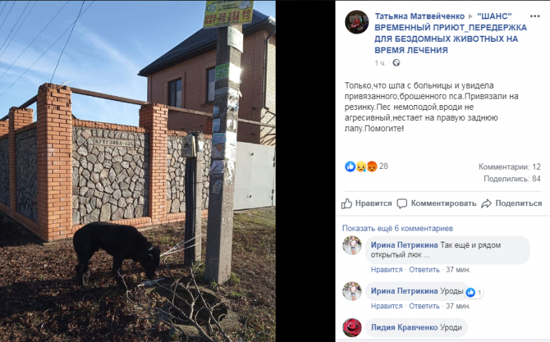 Инцидент произошел на улице Кутузова, что в Шевченковском районе Запорожья. Собака выглядит достаточно старой и не может стать на одну из задних лап. Пес привязан рядом с открытым люком и вполне может провалиться под землю.
