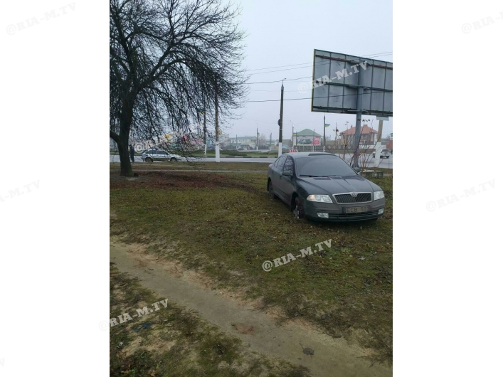 Автомобиль "Шкода" пролетел" через тротуар и "припарковался" на газоне у АЗС.