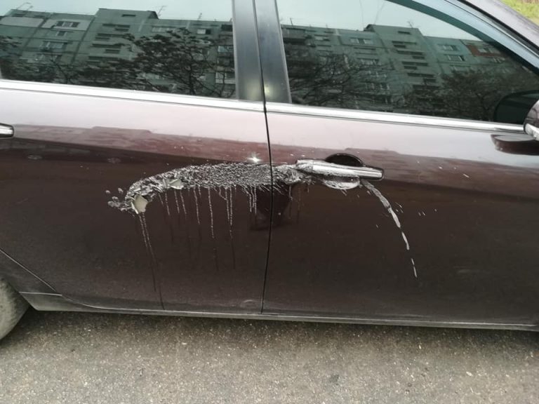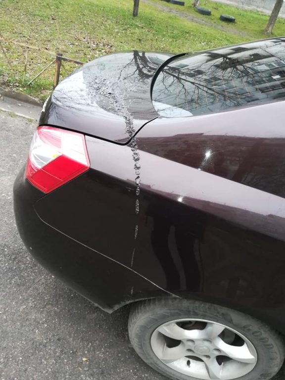 «Сегодня утром выйдя из дома видим такую картину- все машины облиты кислотой. Если кто видел этих уродов просим сообщить», — написала она.