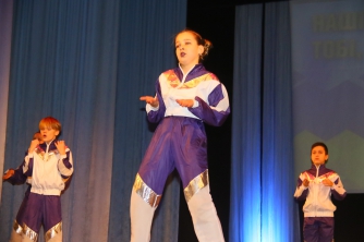 А поздравляли спортсменов своими акробатическими и концертными номерами воспитанники отделения гимнастики ДЮСШ № 3, образцовый ансамбль современного танца «Глория», участники народного цирка «Пламя молодости» ДК им. Т. Шевченко, центр современного танца «Х-миссия», народный театр песни «Шоколад».