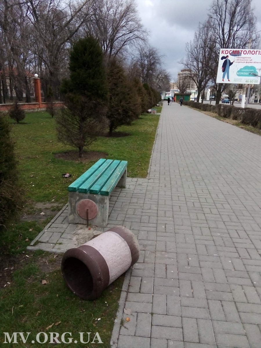 В эту ночь неизвестными лицами были опрокинуты урны возле горбольницы. Кто-то шел и сбивал все подряд. Таким образом поступили с тремя урнами.