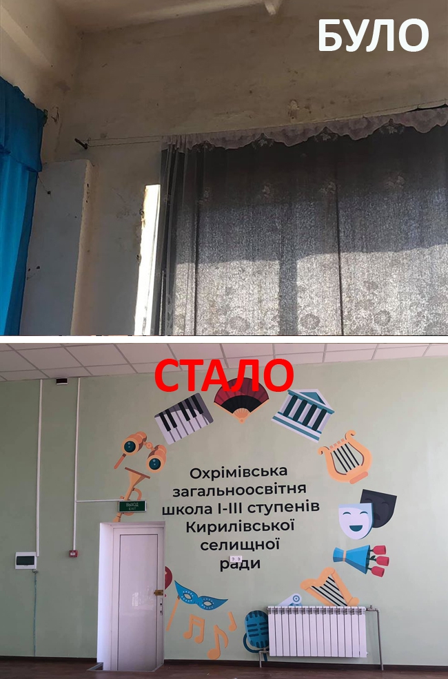 Стоимость проведенных работ и материалов составила около 600 тыс. грн, которые были выделены из бюджета Кирилловской громады. Уже после зимних каникул, 13 января, ученики Охримовской школы смогут пользоваться обновленным актовым залом и устраивать там культурно-массовые мероприятия.