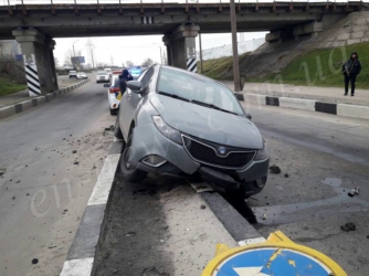 Водитель автомобиля Geely GC5 не справился с управлением и залетел на бетонный разделитель, при этом сбив знак 4.7 «указатель направления движения». Автомобиль получил значительные механические повреждения и дальнейшее движение продолжил на эвакуаторе.