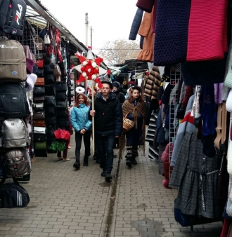 Молодежь планирует пройти по улицам города, заходить в супермаркеты и кафешки. Нам удалось встретиться с колядниками на Центральном рынке. Торговцы встречали поющую молодежь добродушно, но поощряли ребят мало. Между тем, основная часть артистов – студенты и школьники, и самые желанные «гостинцы» и благодарность за коляду для них – деньги. Но и мандарины, сладости тоже приветствуются.